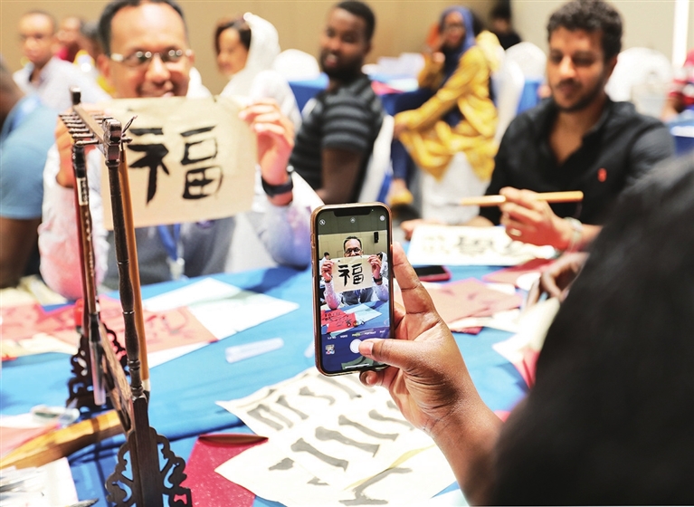 当日,在吉布提非洲青年创新创业中心,吉布提孔子学院老师为来自吉布提、埃赛俄比亚、肯尼亚、乌干达的非洲创业青年上了一堂生动的中国文化课。风俗、书法、剪纸等中国文化引起了学员们的广泛兴趣。 新华社 发