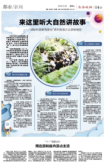太原植物园不仅科普硬件过硬,“软件”更不含糊。在太原植物园科研科普部,讲解员、研学辅导员等相关专业工作人员配备可谓一应俱全。此外,还有集植物文化、生态体验、动手实践于一体的研学课程。