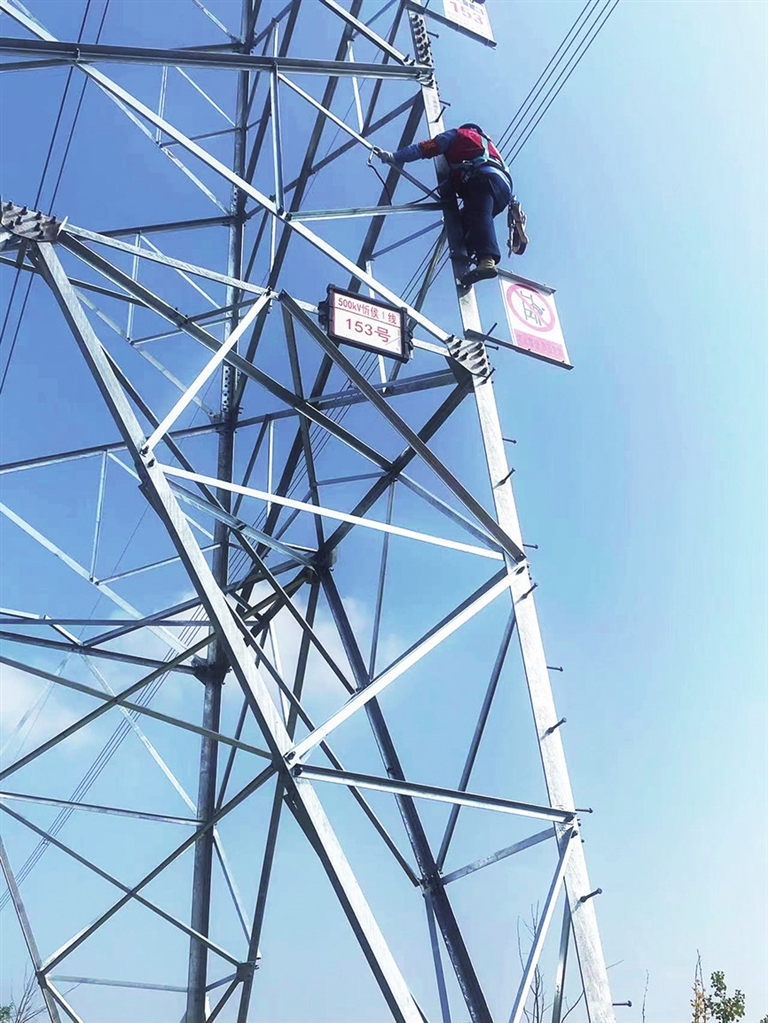 “攀塔走线十分艰苦,但保证了千家万户正常用电,值了!”王洋说。干这一行,需要进行高空心理适应,否则攀登三五米就会发抖。还得有体力,经常是从这座山爬到那座山,在高温和暴雨多发季节,巡检难度更大。要与风雨打“时间差”,及时消除所有对输电线路造成的安全隐患,如此才能保障电网的安全可靠运行。