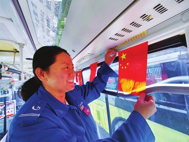 车队队长白海军告诉记者,该车队的4条线路、50多辆公交车,都会在车厢内悬挂国旗,让广大乘客能感受到浓厚的国庆节氛围。