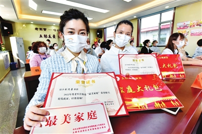 “80后”尹艺儒在姥姥的影响下,养成了绿色环保的生活方式;王志强与爱人同为金融从业者,两人恪守廉洁底线……当天的表彰会上,150户“文明家庭”和“最美家庭”的故事各有特点,感染着与会者。