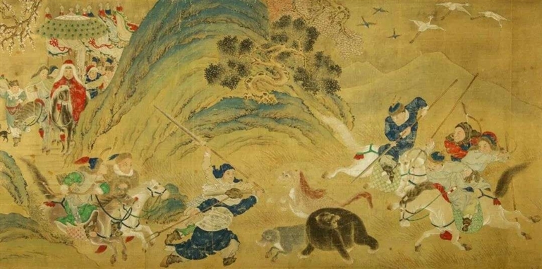 而印有清代乾隆“乾隆御览之宝”等多枚鉴赏印章的设色出行图长卷,展现的体育活动场景就更丰富了,不仅有骑马的场景,在长卷的另一端还有赛龙舟。岸边的人坐在马匹上观赛的细节,也十分生动有趣。