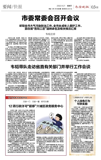~~~听取全市大气污染防治工作、全市未成年人保护工作、 第四届“晋阳工匠”选树命名及相关情况汇报