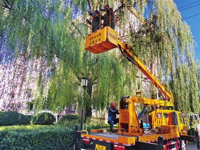 最后,社区想到了辖区内的驻地单位——万柏林区城市服务中心,他们拥有专业的队伍和设备。经过协商,区城市服务中心派出专业人员实地查看并确定方案,在社区的配合下,安排工人及机械车对枯枝进行了全面修剪和清运,消除了隐患。