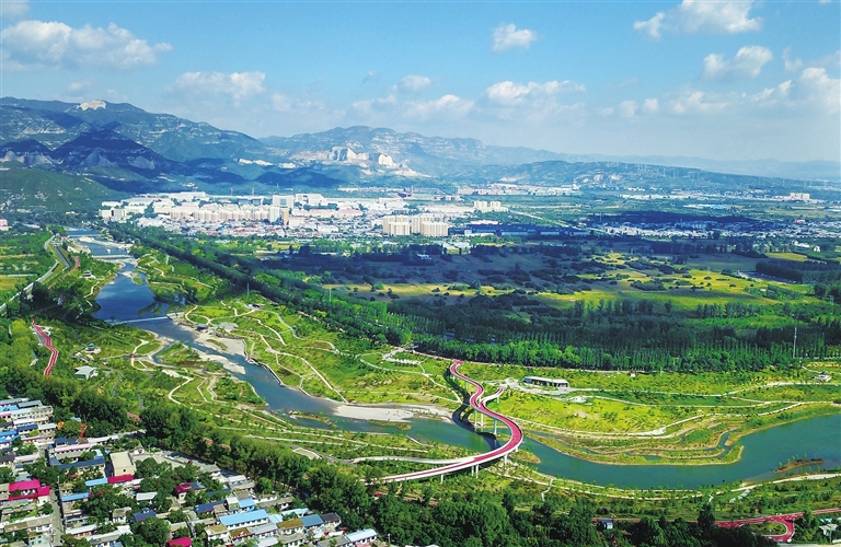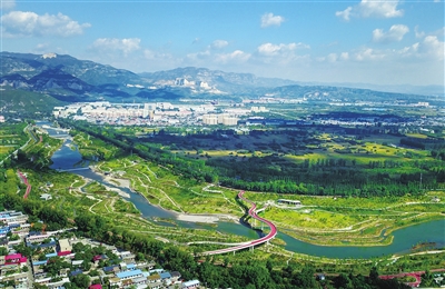 9月25日,秋日的汾河,云影徘徊,绿树成荫,构成了人与自然和谐共生的动人画卷。 李学军 摄