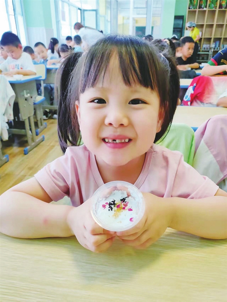 9月22日,可爱的小朋友展示自己亲手制作的手工香皂。为积极践行低碳环保理念,老军营小区三社区新时代文明实践站联合老军营街道社工站、安琪幼儿园,开展“制‘皂’幸福,低碳洗涤”活动。孩子们用果冻盒子作为模具,使用环保材料,感受香皂制作全过程。 侯慧琴 张兆琰 摄