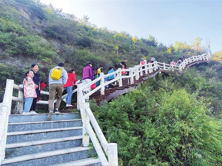 步道沿途有小树荫及休闲椅,爬累的小朋友坐在长椅上吃零食。“周末带着孩子来爬山,亲近自然赏美景,呼吸新鲜空气,想起了我们小时候秋游的感觉,真不错!”社区人员小杨赞叹。