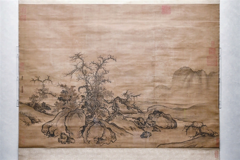 唐寅《双鑑行窝图并书记册》、米友仁《潇湘奇观图卷》、原济《搜尽奇峰图卷》……展厅里展出的古画,件件大有来头。但有一幅接连被两位见惯了大场面的故宫专家评为“神作”——午门展厅最西侧,郭熙《窠石平远图》。