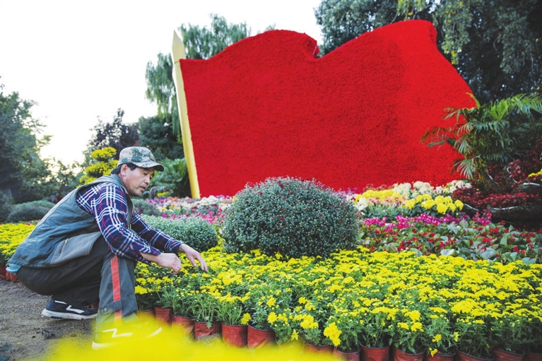 市园林局公园管理科曹小宁介绍,今年布展主要分三大块。一是道路重要节点的立体景观花坛布置。在迎泽大街五一广场和迎泽桥东墨艺苑门口设置3组立体景观花坛。其中,五一广场南广场设置“热烈庆祝中华人民共和国成立73周年”标语花坛,北广场设置“祝福祖国”两组花坛,表达对新中国成立73周年的美好祝愿;在迎泽桥东墨艺苑门口设置“建功新时代”花坛,以迎风飘扬的红旗为主景,展现并州儿女奋进新征程、建功新时代,全方位推动高质量发展的使命担当。