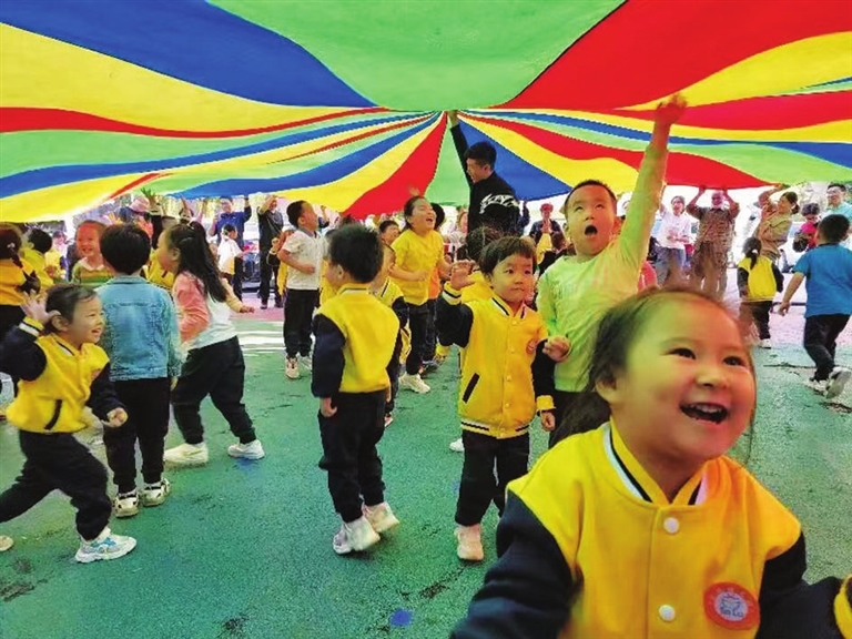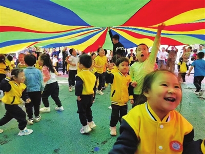 为庆祝国庆节,9月26日,迎泽街道青年路三社区新时代文明实践站联合驻地幼儿园,开展“庆国庆 喜迎二十大 同心向未来”亲子运动会。亲子齐心协力,共同完成了拔河、踢毽子、跳绳、踩气球等游戏项目的挑战,现场掌声与欢笑声不断。增进亲子感情的同时,激发了对祖国的热爱。 侯慧琴 王浩 摄