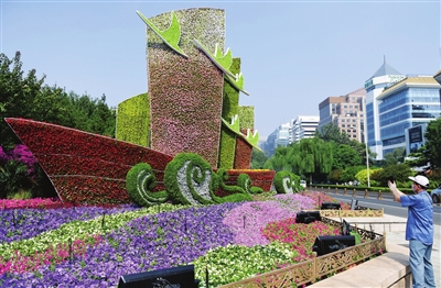 蓝海浪告诉记者,修改次数最多的当数东单西南角的“共享发展”花坛。因为“共享”这个概念比较抽象,要表现出来并不容易。最终,设计师们加入了数据交互、北斗导航、智慧城市等意向。