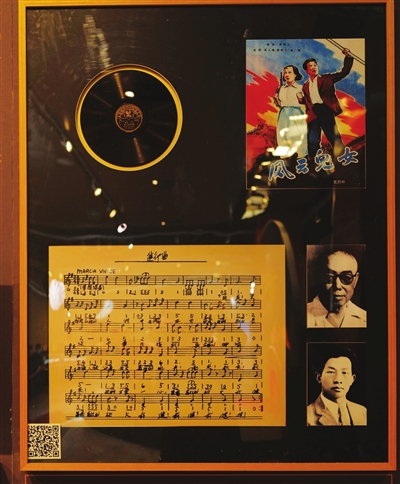 另一重要展品是录制于1935年5月的《义勇军进行曲》首版唱片。当时,它还只是电影《风云儿女》的主题歌,但对激励中国人民的爱国主义精神起了巨大作用。扫描展品跟前的二维码,就可以听到在简短报幕之后,激昂振奋的乐曲穿透时光回响在耳边。