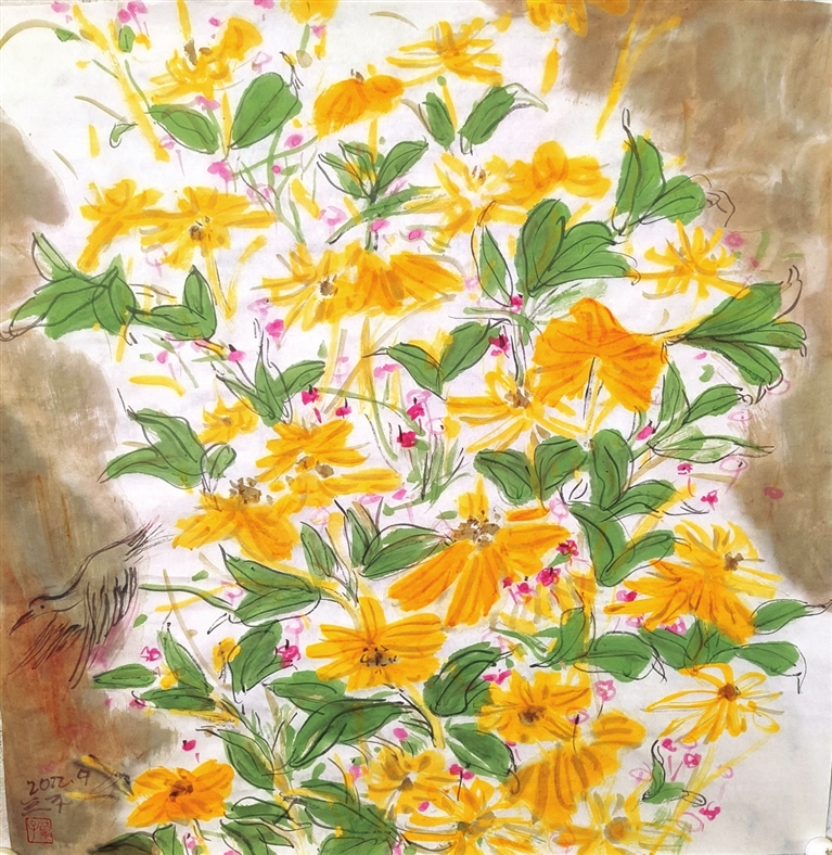 画了多年的花,感觉它们是有性格的,否则不会惹得古往今来的文人墨客为之倾注万般情怀:牡丹的雍容华贵,梅的坚强孤傲,荷的博大宽厚。与它们不同的是,我认为菊花更接地气,更随和而质朴,“采菊东篱下,悠然见南山”,它是悄无声息地陪伴在人们身边的好伙伴,点缀着百姓的生活,它的清新素雅,经霜不凋的品质,是我,也是所有爱菊、画菊人的共同追求,并且会一直追求下去。