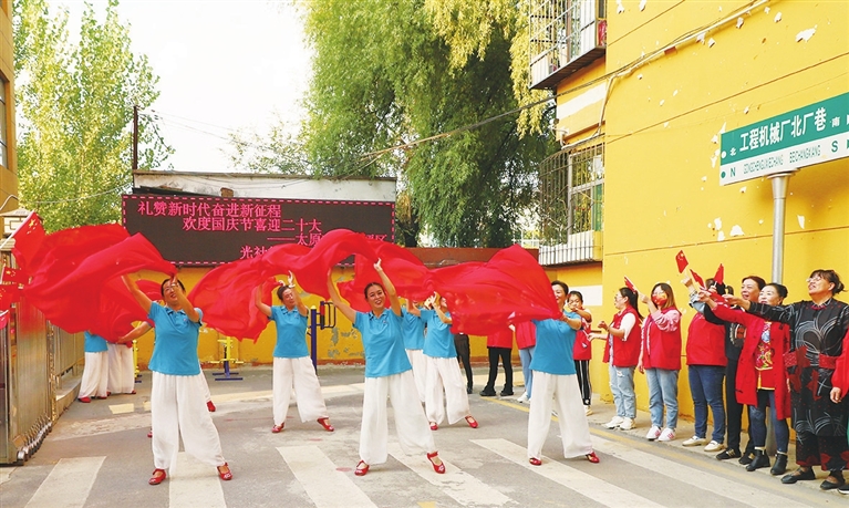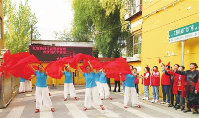 9月28日,光社街道建工一社区的居民们用自编自演的节目,庆祝祖国73岁华诞。张昊宇 摄