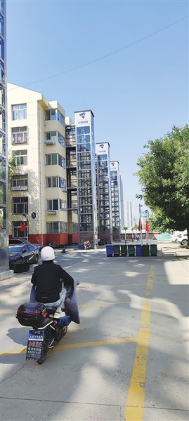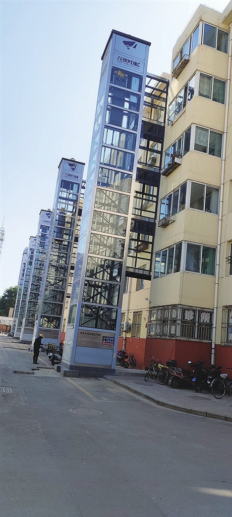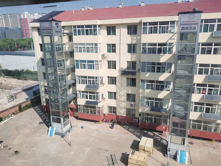 记者在南屯北小区电梯施工现场看到,新加装的电梯位于正对单元门的位置,距单元门约有3米多,一点也不影响一层住户的进出。二层以上,电梯由连廊与住户连接,进出也十分方便。电梯上下通道是玻璃式的,犹如大商场里的观光梯。这种设计,让新装的电梯与原有楼体和谐地融为一体,钢结构玻璃外观更让老楼房多了几分现代气息。