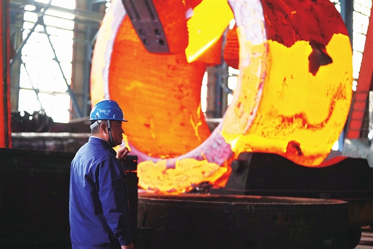 记者日前走进中国一重水压机锻造厂的厂房采访,刘伯鸣正在指挥操作手通过水压机把烫得发红的巨大钢锭塑成轴、辊、筒等各类锻件,这些锻件将被应用到核电、石油、化工等重大国计民生领域。水压机每一次锻压的时间、强度、角度,都分毫不差。