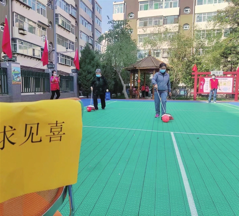 “天天在家扫地,但用扫帚把球扫到目的地可没那么容易……”当天上午,阿姨们拿起扫帚,努力推着小球跑。“不听话”的小球时而滚出场地,时而混入“敌营”,让人忍俊不禁。那边,大妈大姨们拿起彩笔,在扇面上画出京剧脸谱和祖国山河,感受这份浓厚的爱国情。两人一组,一方投球,另一方用小盆接着,看看哪个组投入盆的球最多……