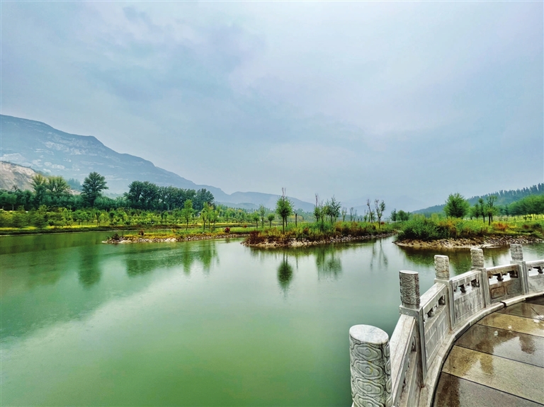 “山色空蒙雨亦奇。”叠翠轩前,遥看远处峰峦叠嶂,第二次来到汾河四期的祝先生夫妇俩说。“上次来还是去年的国庆节,当时刚刚开园,草是小芽,树是嫩叶,一年时间,它们长大了不少。”