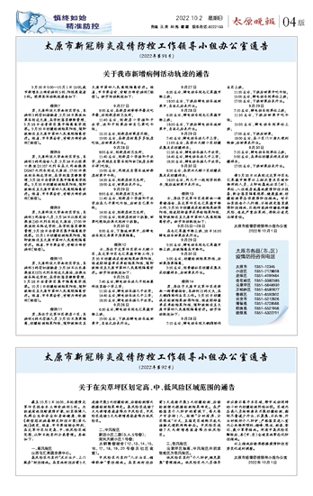 太原市新冠肺炎疫情防控工作领导小组办公室通告