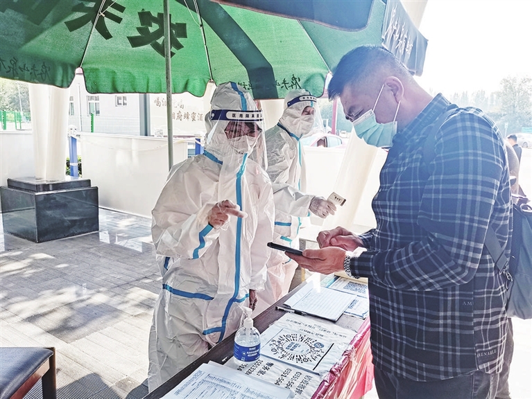 一个小时后,孙林梅刚打开盒饭准备吃午饭,接到保安人员的电话,“服务区有一位来自内蒙古的旅客在查验‘三码’时,健康码为绿码,扫场所码时变为黄码,怎么办?”孙林梅推开饭盒,穿好防护服向门外走去。路上,她向属地防疫部门做了情况汇报,到了现场后,她认真核实登记信息,并带司机到服务区的核酸检测点做了单管检测。之后,她安排专人引导旅客到临时隔离室。经过一番调查发现,对方在扫场所码时登记信息有误,按照规定,重新登记信息后予以放行。对方离开后,她安排保洁员对来人所接触区域进行了消毒。