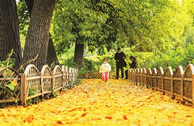 10月8日,适逢“寒露”节气,迎泽公园满地金黄。小朋友在落叶上嬉戏,感受斑斓秋色。 王韵菲 孙卓阳 摄
