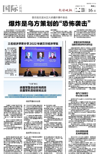 根据俄总统网站发布的消息,巴斯特雷金当天面见普京,向其报告了克里米亚大桥爆炸事件的调查情况。巴斯特雷金说,俄侦查人员已确定发生爆炸的卡车的行驶路线和承运人,并已锁定策划和实施袭击的嫌疑人。