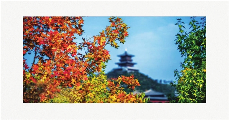 低矮翠绿的叉子圆柏,匍匐在地,绿得如洗过一般,起起伏伏像是波涛涌动;小槐树,黄灿灿地夺了银杏的风头;杮子树,大片大片的红叶子、绿叶子、红绿相间的叶子,在枝上舞动,只是一个杮子也没有了。