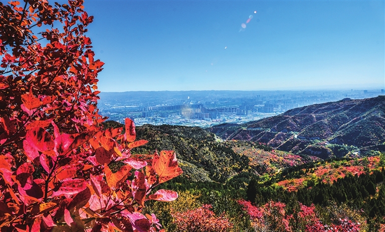 10月18日,崛山围山红叶迎来最佳观赏期,满山红叶,美景如画。 李学军 宋卫东 摄