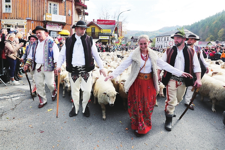 什恰夫尼察当日举行传统的秋季羊群游行活动。牧羊人赶着羊群伴随着音乐走上街头,吸引了许多慕名而来的游客。 新华社 发