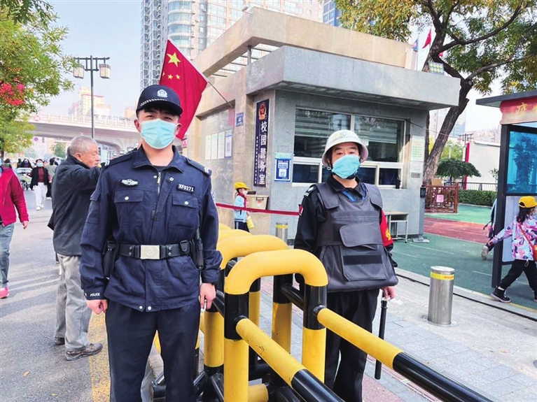 为确保复学复课安全有序,杏花岭派出所启动“护学模式”,采取“定岗、定人、定时间”措施,不断加强巡逻防范力度,做到上下学时段在校门口及周边“见警车、见警灯、见警察”。在站好“护学岗”的同时,民警积极引导车辆减速慢行,提醒学生不扎堆、佩戴好口罩、保持间距,确保校园周边交通秩序良好、师生出行安全。图为10月25日,民警在五一路小学前值勤。 刘友旺 王雁霏 摄