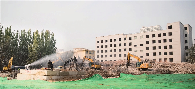 10月26日,位于朝阳街的山西省档案馆旧馆正在拆除,为地铁1号线朝阳街站的建设腾出空间。 王韵菲 孙卓阳 摄