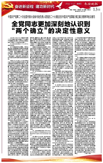 全党同志更加深刻地认识到“两个确立”的决定性意义