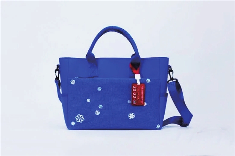 经过多轮探讨和集思广益,结合座椅套尺寸规格,“文创包”成为项目开发的首选。经过测试和调整,带有雪花元素的座椅套被设计成不同款型的“文创包”。“文创包”巧妙浓缩冬奥元素,包带上织有“鸟巢”“2022”暗纹字样,包身配备与看台座位号码一致的专属编码牌,为增强实用性,还增加了衬里、拉锁等配件。