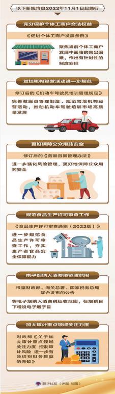 这个11月,一批民生新规开始施行,影响社会生活诸多方面。保护个体工商户合法权益、规范驾培机构经营活动、完善药品召回分级制度……更完善的法治,让你我更有获得感。