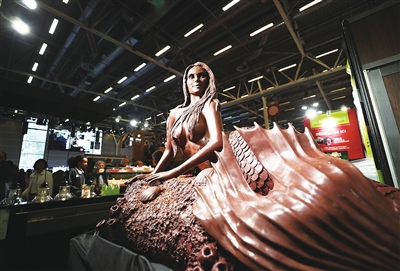 10月31日在法国巴黎巧克力沙龙上拍摄的巧克力美人鱼。