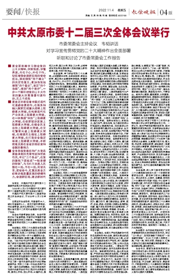 中共太原市委十二届三次全体会议举行