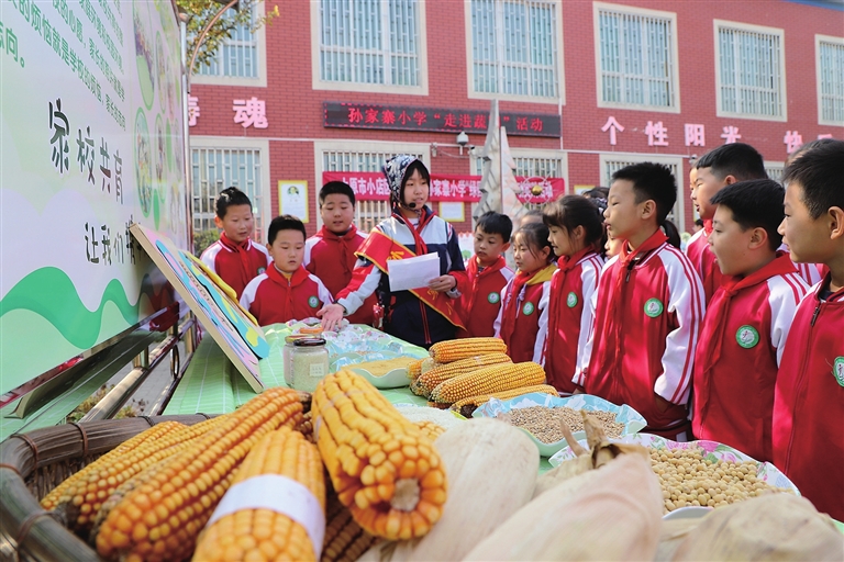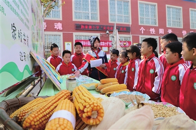 11月4日,小店区孙家寨小学开展“绿园享丰收”劳动技能比赛。削柿子皮、剥蒜、剥玉米,同学们通过体验树立正确的劳动观念,促进全面发展。 张昊宇 摄