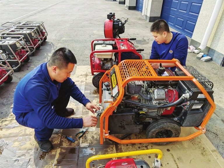 那段时间,维修小组克服一切困难,及时高效维修手抬泵、浮艇泵20余次,修补冲锋舟体10余次,还对40余辆消防车、150余件套装备器材进行了全面细致检查,维修器材装备55件套,确保所有参战车辆、器材装备安全可靠。