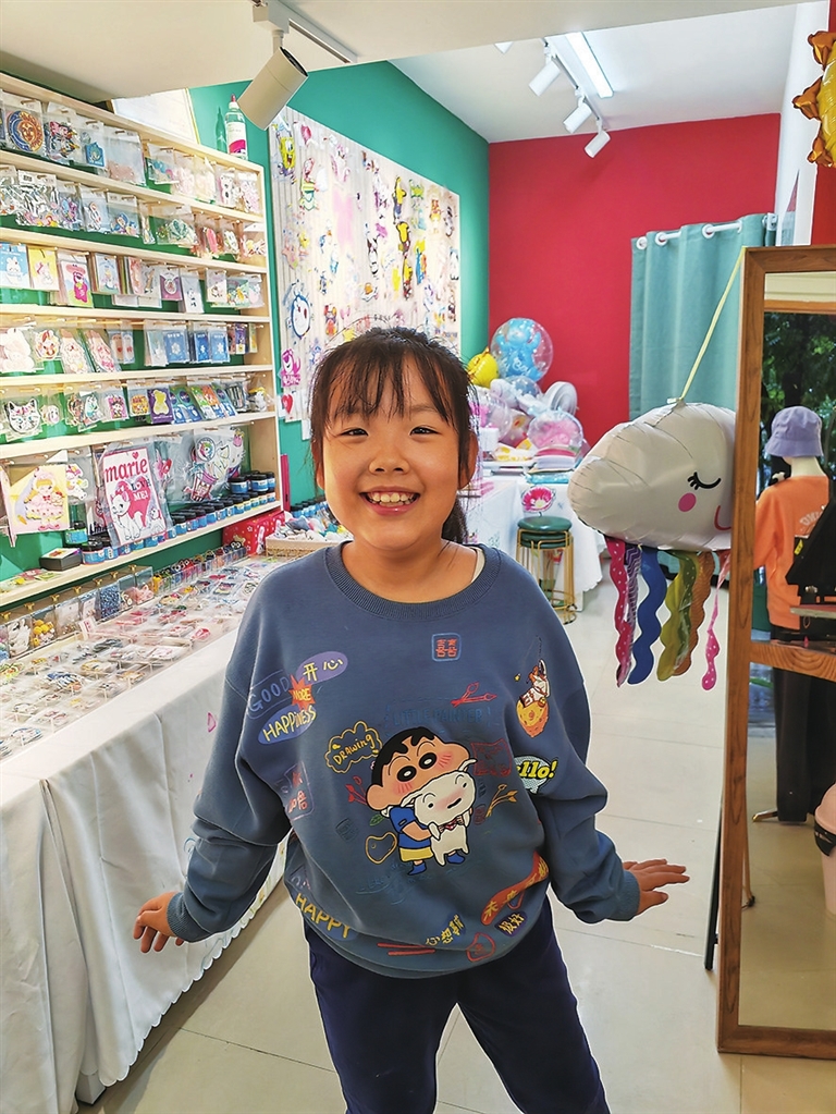 店主告诉记者,卫衣、裤子和T恤等服装都可以DIY设计,情侣、亲子、兄弟、闺蜜,还有老年人都能参与设计并体验。一般印一张大型贴画花费30元,印一张小型贴画或者刺绣贴大多10元一张。店内销售的成人普通卫衣价格在160元左右,儿童的在130元左右,顾客购买衣服后就可以免费选择3套装饰来设计衣服。如果连上裤子全套下来也就两三百元。