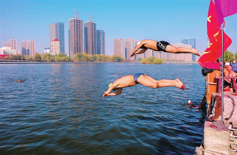 11月7日,我市汾河冬泳队在汾河景区举行2022冬泳入水活动,展现了冬泳爱好者强身健体、不畏寒冬的精神风貌。 记者 赵世凯 摄