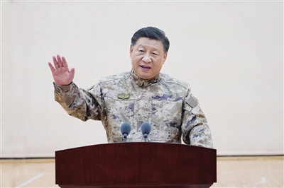 习近平指出,党的二十大从全面建设社会主义现代化国家、全面推进中华民族伟大复兴的全局出发,对国防和军队建设作出战略部署,强调要如期实现建军一百年奋斗目标。全军要认真贯彻党中央和中央军委部署要求,把党的二十大精神学习好、宣传好、贯彻好,确保党的二十大精神在部队落地生根,以实际行动开创国防和军队现代化新局面。