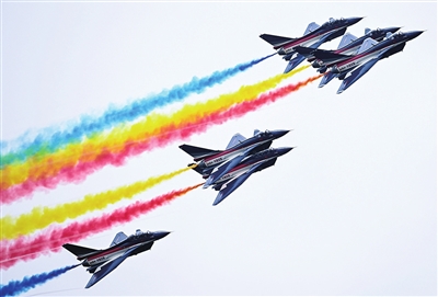 答:飞行表演表面是“看”,内涵却是“战”,只有一流的战斗队才能称得上一流的表演队。特技飞行表演精彩绝伦,其技术难度之大、风险系数之高,远超常规战术动作,兼具极高的观赏性和视觉冲击力,因此被比作“刀尖上的舞蹈”,成为世界各大航展最引人注目的“重头戏”。当前,世界上只有中国、美国和俄罗斯使用自主研发的三代机进行飞行表演,表演队员全部是从作战部队层层选拔出的优秀飞行员。例如,在进行最大角速度盘旋、大速度通场等动作时,需要飞行员持续承受6个G左右的过载,非常考验飞行员的抗载荷能力。看起来炫酷刺激的表演动作全部源于空战需要,是展示武器装备、弘扬空天文化的窗口,更是经历了战火硝烟、千锤百炼的战史缩影,体现的是空军飞行员的智慧、血性、担当和维护国家空天安全的坚定意志,这充分体现中国空军战斗力水平,更彰显了我国强大的综合国力。