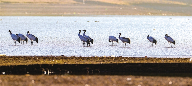 黑颈鹤是国家一级保护动物。目前,每年到林周县越冬的黑颈鹤已达2000只左右,林周县区域内的大片湿地成为黑颈鹤的“冬季乐园”。新华社 发