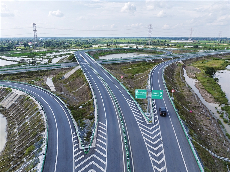 金港高速公路连接柬埔寨首都金边和该国最大深水海港西哈努克港,是中国路桥按“建造-运营-移交”模式投资的项目,采用中国设计及质量标准,横跨5个省,全长187.05公里,双向四车道。金港高速公路通车后,从金边到西哈努克港的车程将从原来的5个多小时缩短至2个小时以内。 新华社 发