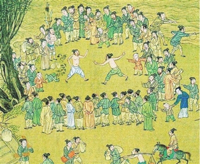 拔河在唐代是一种群体性运动,也是群众基础较广泛的一项运动。除了趣味十足,又可锻炼身体,民间、宫廷、军中都流行这种运动。
