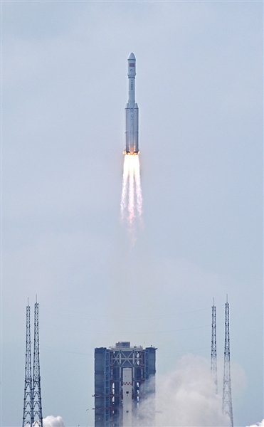 发动机的轰鸣震动大地,耀眼的尾焰辉映海天,长征七号火箭成功发射,将天舟五号货运飞船精准送入预定轨道。