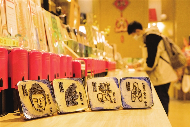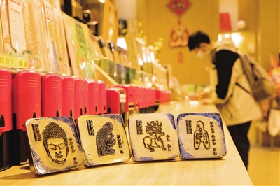 山西博物院结合文物元素推出了文创印章,展现了中华传统文化的魅力。图为11月11日,游客正在体验文创印章的乐趣。 王韵菲 摄