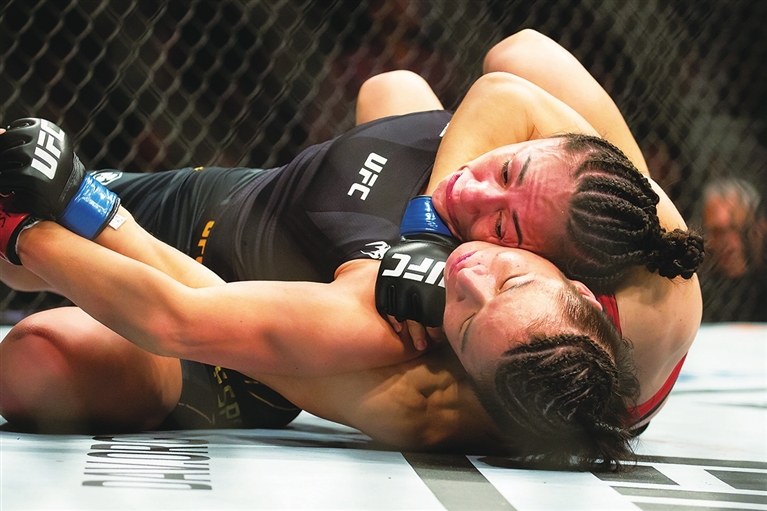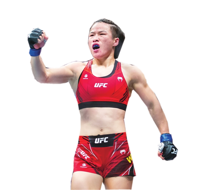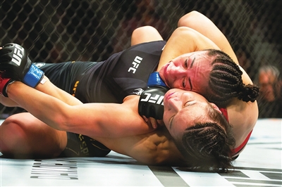 32岁的河北姑娘张伟丽是亚洲格斗界的旗帜性人物。2019年8月,她在签约UFC的第四场比赛中便一举夺得“金腰带”,成为该级别第五位冠军,也改写了亚洲MMA运动的历史。2020年3月,她在第一次卫冕战中获胜。不过,去年她连续两次败给美国名将罗斯·娜玛尤纳斯,不仅丢掉了冠军头衔,也陷入了战绩低谷。