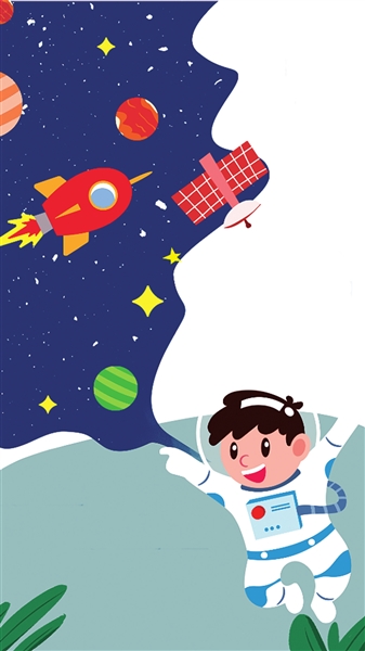 我说:“大鹏,我想飞到天上去看看。”于是,大鹏让我坐在它的背上,过了一会儿,我就飞出了地球,来到了神奇的太空,停在中国空间站外。宇航员刘洋姐姐热情地邀请我进入空间站参观,在这里,我体验到了失重的感觉,见到了绿色的太空植物,了解了宇航员是怎么工作和生活的。我还穿上宇航服走出舱外,来了一次“太空漫步”。