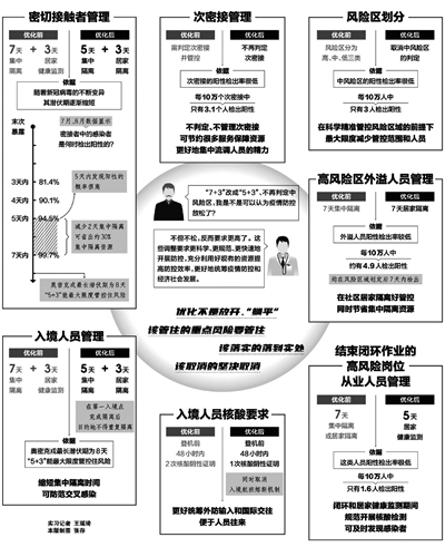 进一步优化疫情防控的二十条措施日前发布,涉及密切接触者和次密接的管理措施、风险区的判定划分等。国家疾控局随后公布了一组评估数据,阐述了引起大众关注的部分优化措施的科学依据。